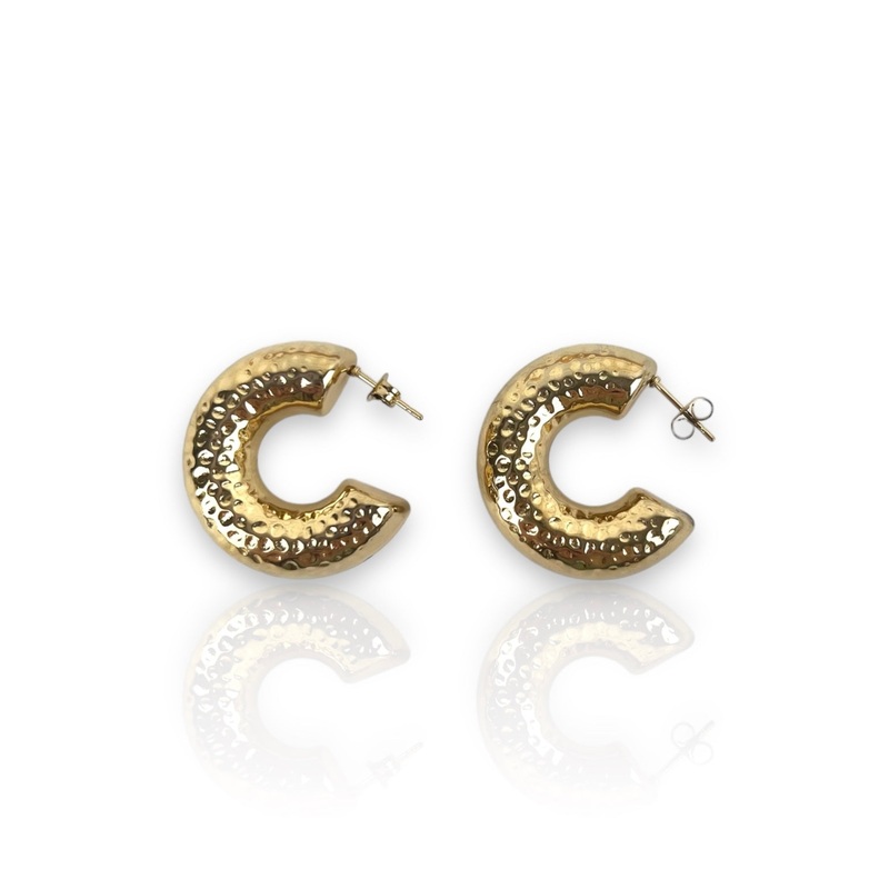 Pendientes de aro con forma de media luna en dorado.Estn hechos de acero quirrgico. Este material no pierde el color y no es alrgico.Material: acero alergnicoEste articulo esta diseado y fabricado integramente en Europa e importado por Sorellas