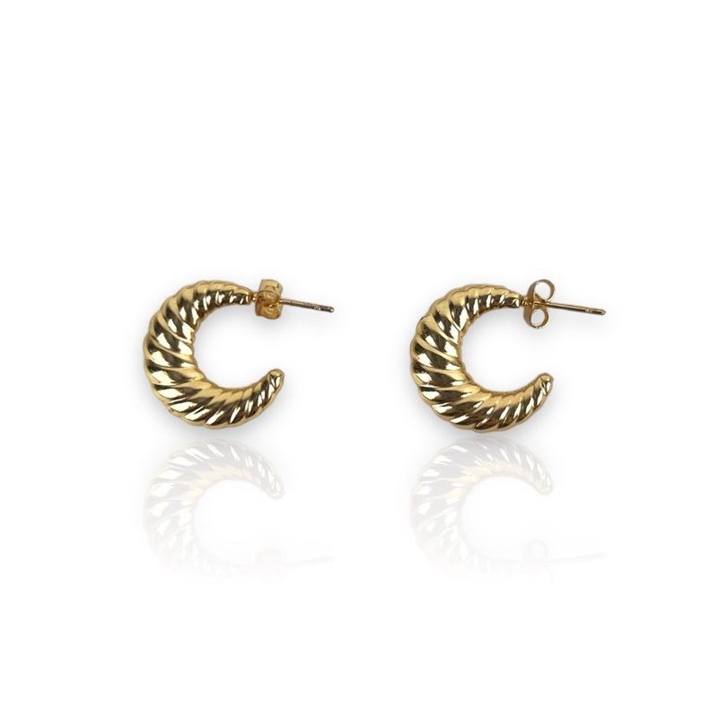 Pendientes de aro con forma de media luna en dorado.Estn hechos de acero quirrgico. Este material no pierde el color y no es alrgico.Material: acero alergnicoEste articulo esta diseado y fabricado integramente en Europa e importado por Sorellas