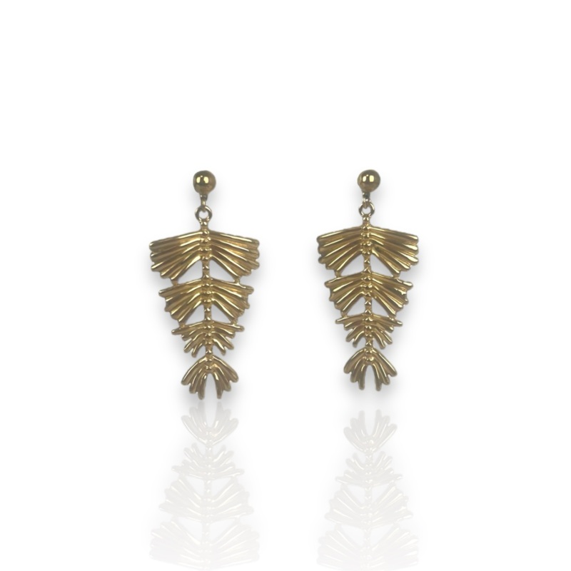 Pendientes dorados en forma de palmera, con parte superior en forma de bolita dorada.Esta hechos de acero quirrgico. Este material no pierde el color y no es alrgico.Material: acero alergnico Este articulo esta diseado y fabricado integramente en Europa e