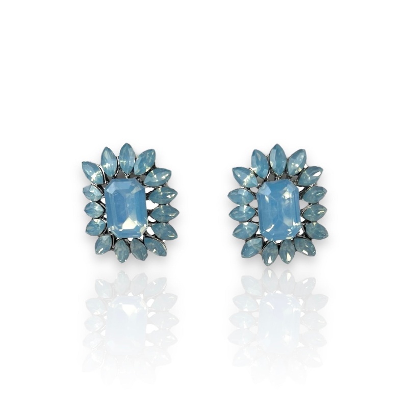 Pendientes de piedras en color celeste en forma de flor.Estn hechos de acero quirrgico. Este material no pierde el color y no es alrgico.Material: acero alergnicoEste articulo esta diseado y fabricado integramente en Europa e importado por Sorellas
