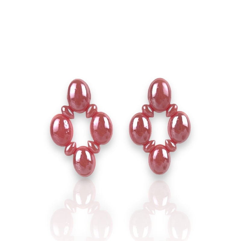 Pendientes con detalles de piedras en forma de rombo, tonos rosas. Cierre clsico.