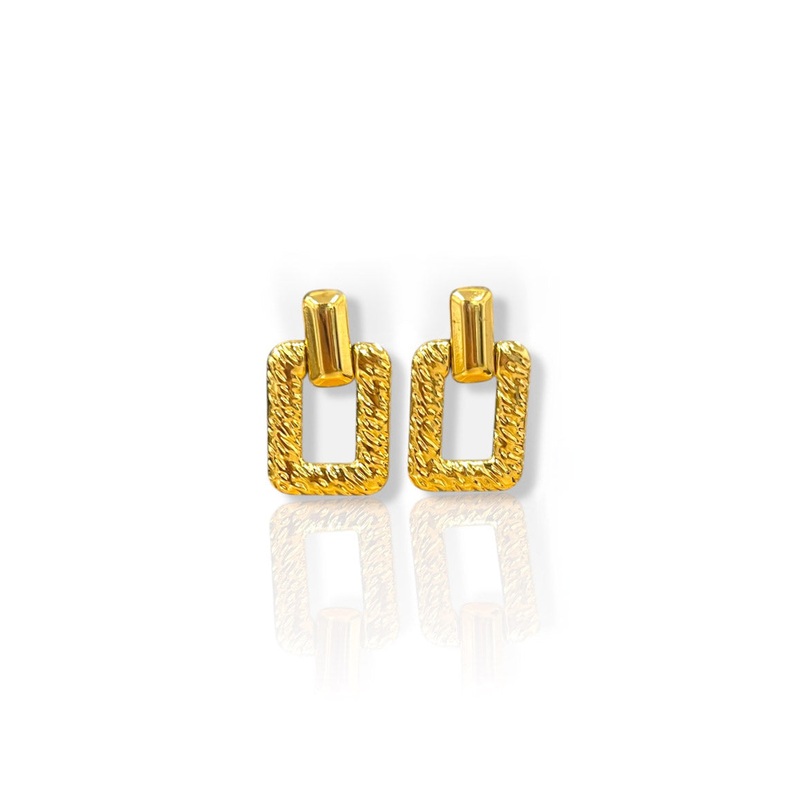 Pendientes textura rectngulos dorados U