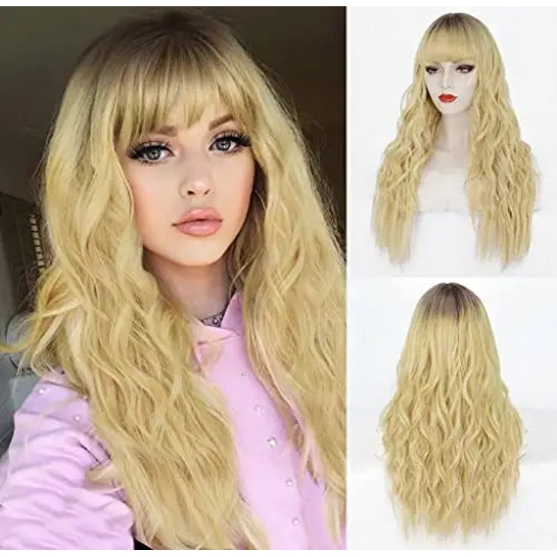Penelope Transitional Dark Root to Light Blonde Long Heat Resistant Hair WigAvailable in 3 different shades to suit almost every complexionMade of high quality heat resistant synthetic fibersLong curly wavy soft textured heat friendly fibre hair26 inches l