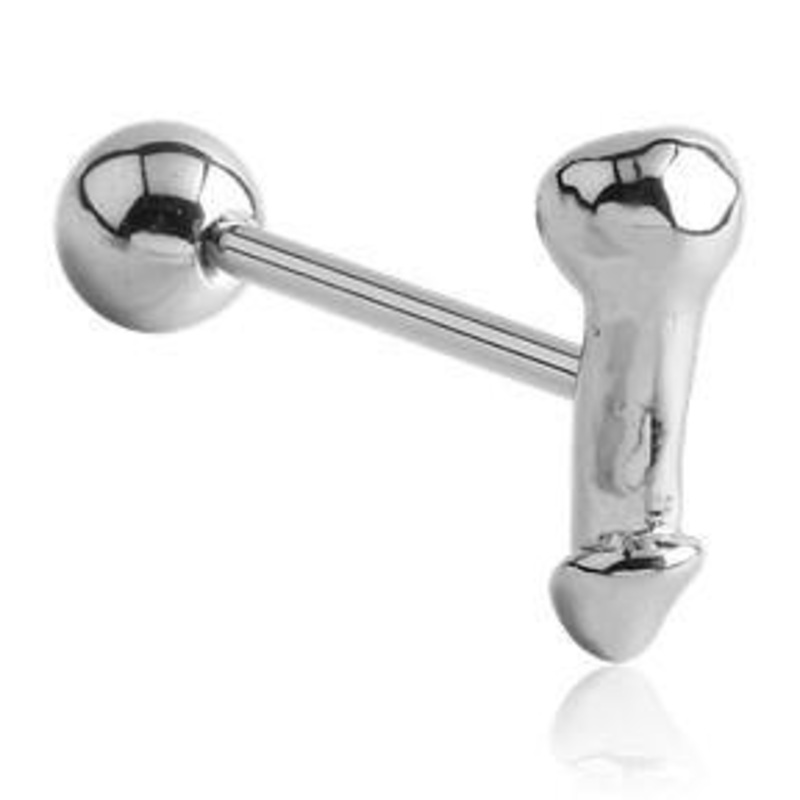 The 14 gauge penis tongue barbell is made from 316L stainless steel with external threading.