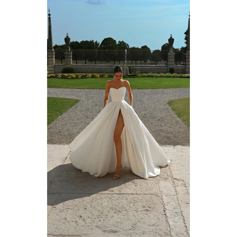 Perfect satin chicken heart collar A-line slit button wedding dresses