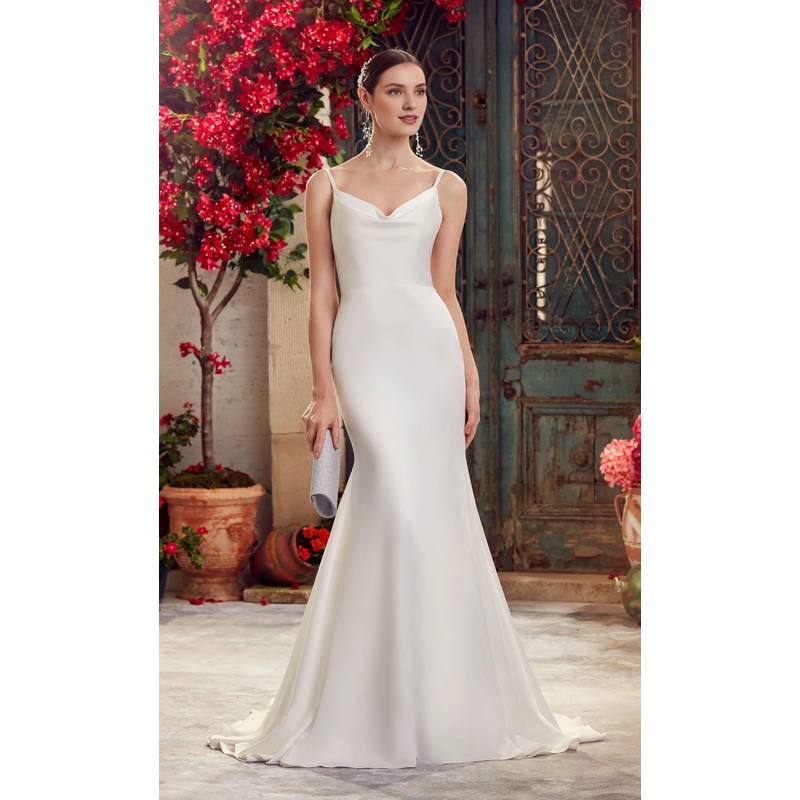 Perfect satin lapel slim fit trumpet shaped V-shaped back wedding dresses