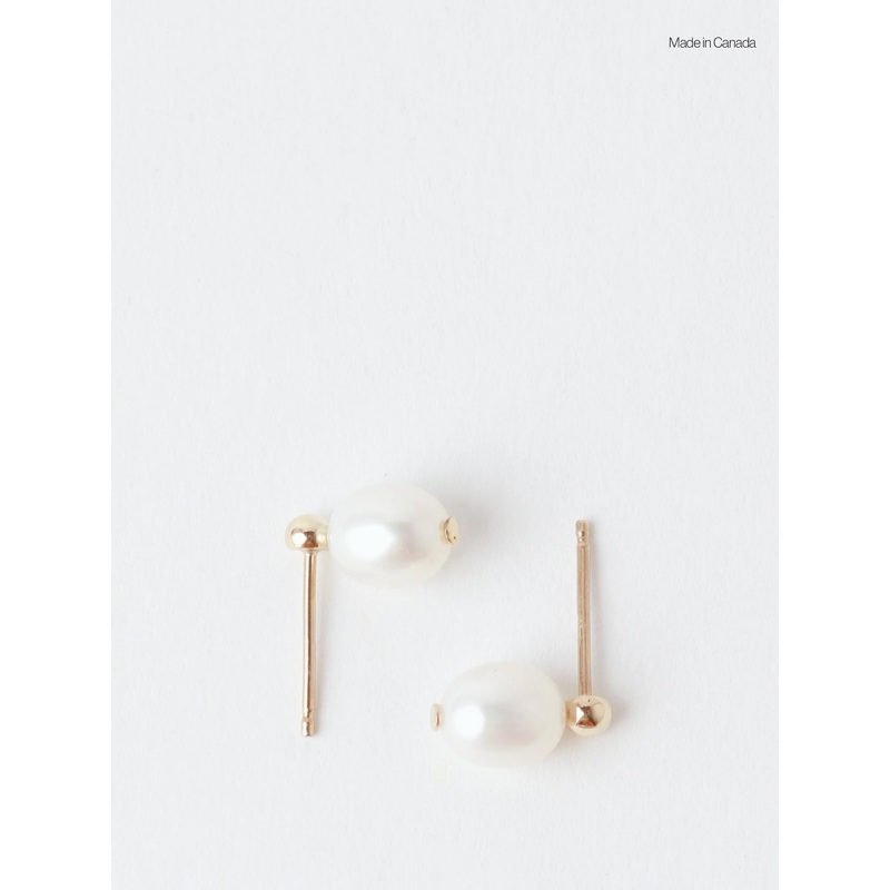 These oval-shaped pearl studs are crowned with a gleaming 14K gold ball detail, blending classic elegance with a modern edge.Stud earringsSold in pairsMaterials14k gold with freshwater cultured pearlMade in CanadaSize GuideTotal length: 3/8"Pearls: 5-6 mm