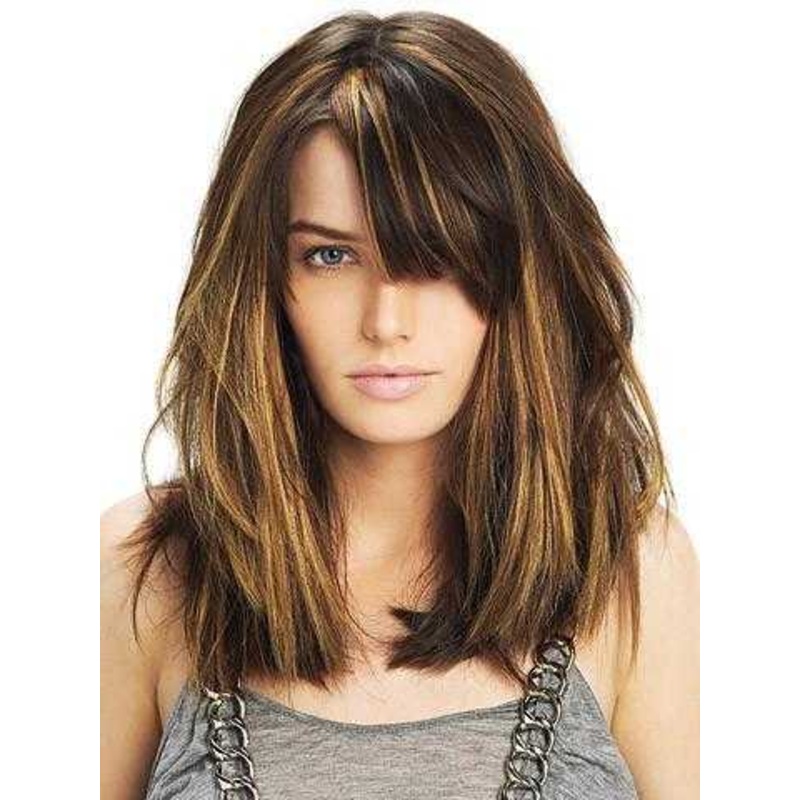 A beautiful dark brown wig with caramel blonde highlights