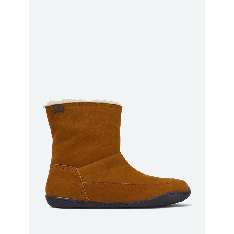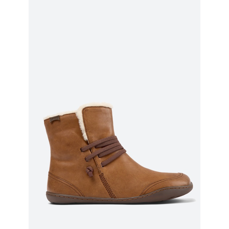 Camper Peu womens mid boot are modeled after the shape of the foot with a unique silhouette that retains all the benefits of barefoot walking.Ankle heightElastic shoelacesFaux fur lined360 stitched for durabilityRound toeMaterials Upper: calfskinLining: te