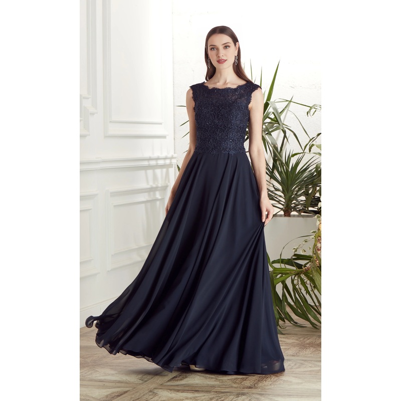 Phantom collar chiffon lace flowing long formal dress for mothers of the bride dresses