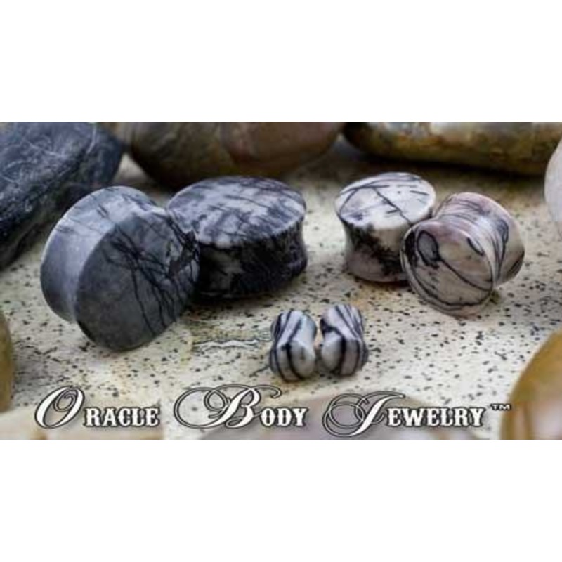 These double flare picasso jasper plugs are made by Oracle Body Jewelry. They feature the highest quality material and nice 1/16″ flares to keep your jewelry in place and comfortable. Choose your size below.