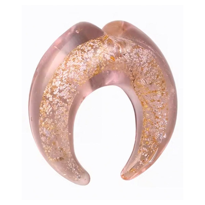 The pink dichroic septum pincher is made from hand blown borosilicate glass. It has a slight notch at the top center and the interior diameter is approximately 1/2". It measures about 0.5mm smaller at the notch. Choose your size below.