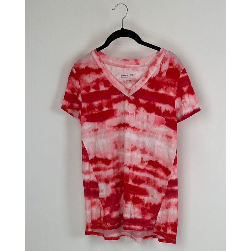 Cuddl Duds soft and stretchy V-neck shirt with pink and white tie dye