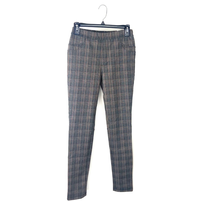Brand new, donated from the designerSanctuary brown red and black plaid pants with stretchable elastic waistband,faux pocket design and skinny leg pantsSize Extra SmallFabric Content: 67% Polyester, 29% Rayon, 4% SpandexEstimated Original Retail Price: $89