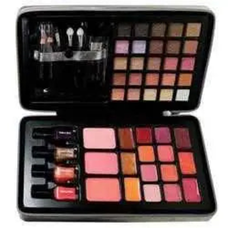 This professional makeup kit is one of our best sellers. It has everything you need for your eye, lips, face and even hands.Yes thats right. It also has nail polish in this little kit.Best of all its a great gift as it comes beautifully packaged in a chic