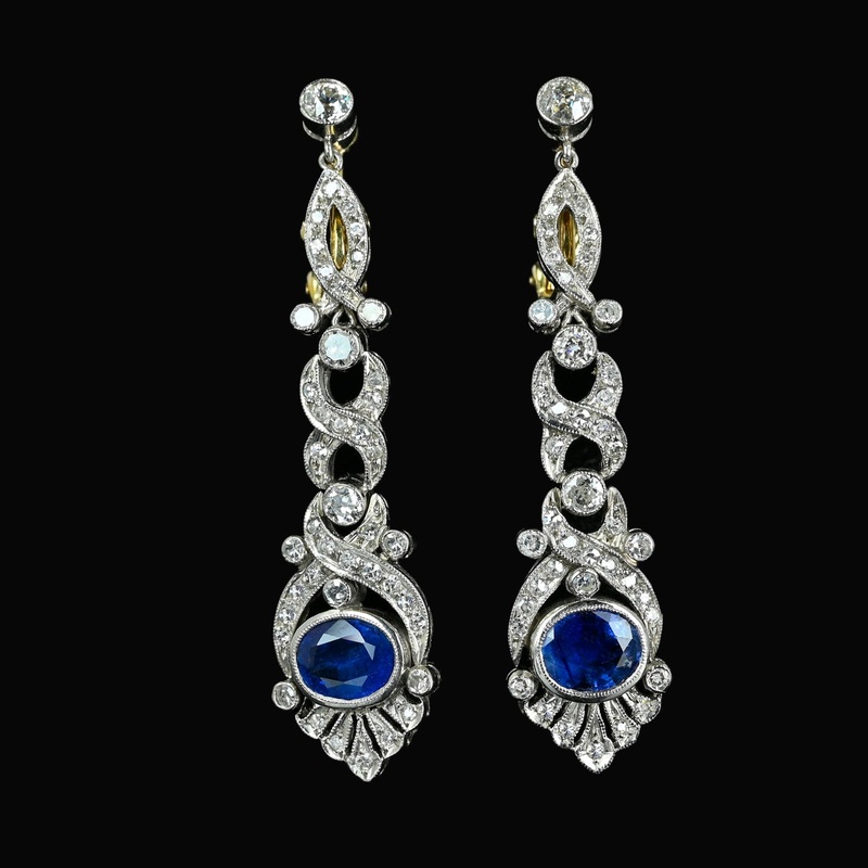 Platinum Ceylon Sapphire and Diamond Drop Earrings