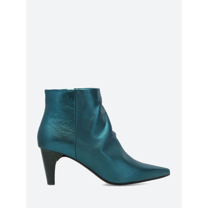 A timeless day-to-night wardrobe essential, the Plato pointed-toe ankle bootie is made up in chic black leather. Featuring a sculpted solid wood oval heel hand painted in a striking teal wash. Wear casually with denim or dress to the nines, Plato is the ul