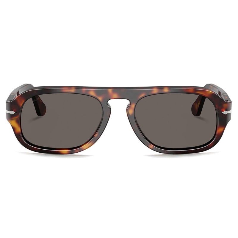 The Persol // PO3369S is a confident aviator-style sunglass handcrafted in Italy from high-quality acetate. Featuring a flat brow line, keyhole bridge, and medium-width temples, this sleek silhouette offers polished contemporary appeal. The frame is accented with Persols signature Supreme Arrow hinge and flexible Meflecto system, while premium lensesavailable in solid, polarized, or gradient optionsdeliver exceptional clarity and UV protection. With its bold presence and effortless refinement, the PO3369S is podium-worthy both on and off the track. Includes Persol case, cleaning cloth, and 1-year manufacturer warranty.