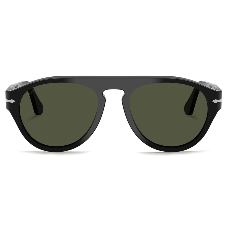 The Persol // PO3370S is a sleek pilot-style sunglass handcrafted in Italy from refined acetate. It features a flat brow line and keyhole bridge for a sharp, contemporary profile, with medium-width temples that balance the bold frame. Designed with a high-bridge fit option, it offers added comfort and stability for higher nose bridges. Finishing the clean look are Persols iconic Supreme Arrow hinge and flexible Meflecto temples, while high-quality crystal lenses deliver crisp clarity. The PO3370S delivers Italian elegance with a modern racing-podium edge. Includes Persol case, cleaning cloth, and 1-year manufacturer warranty.
