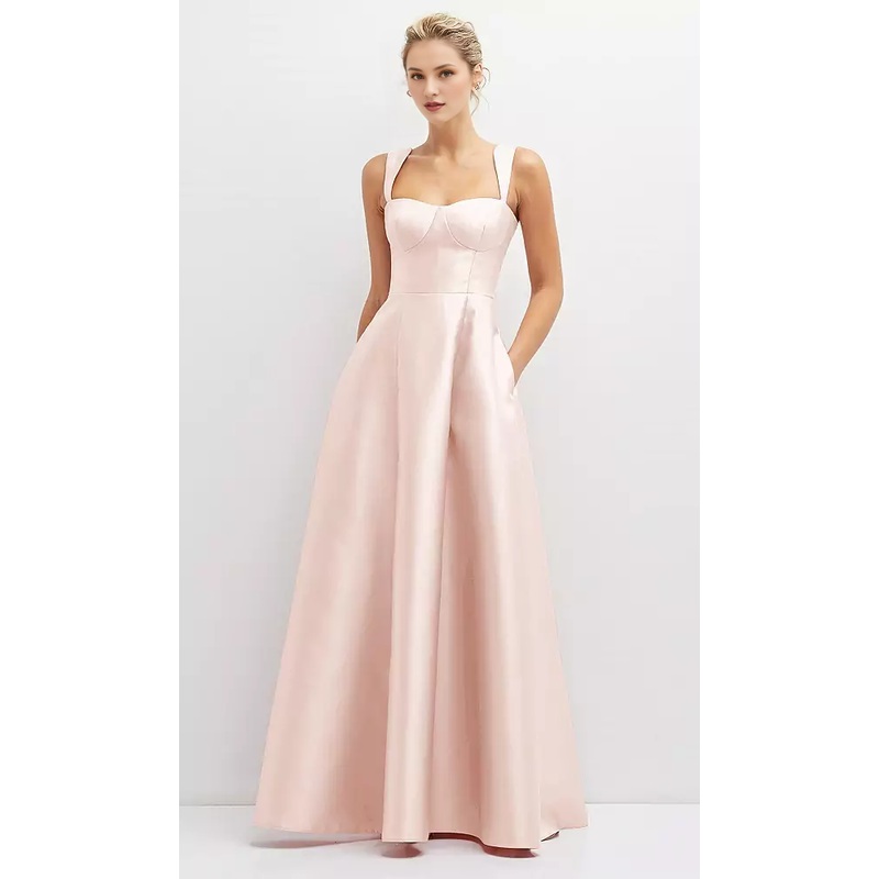 Pocket tie back tight corset satin and floor length Prom dress