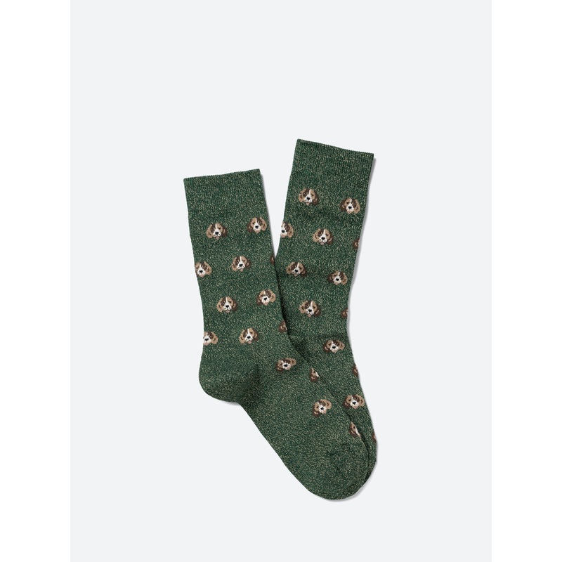 These shimmery jacquard socks feature an all-over beagle design.Calf-height socksRibbed cuffsAll-over beagle patternHeight: 19 cmMaterialsFabric Content: 52% cotton, 30% polyamide, 16% metal polyester, 2% elastaneMade in FranceSize GuideOne size fits most.