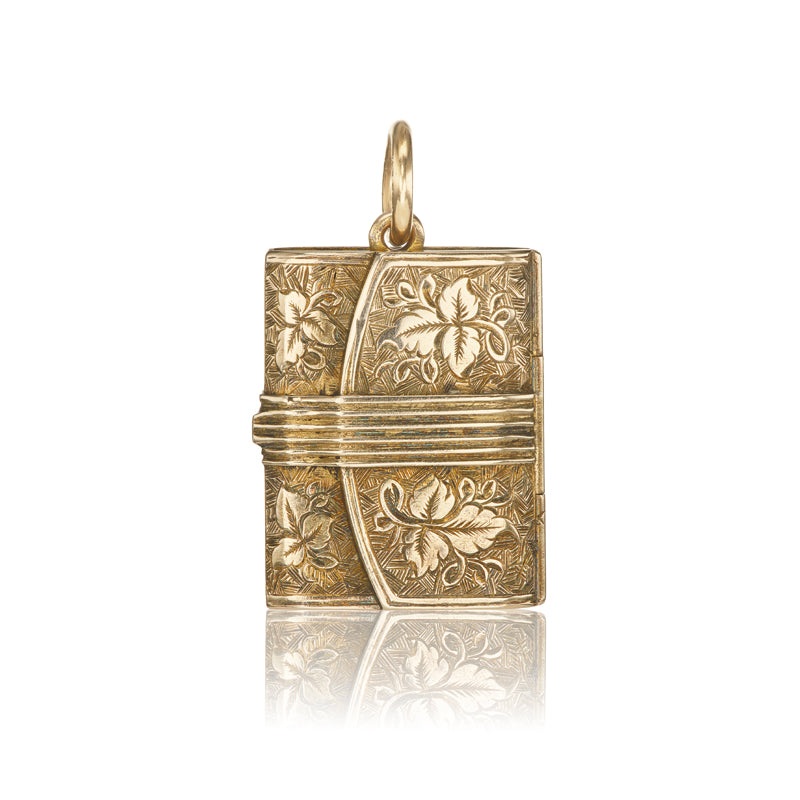 Antique Notebook-Shaped Locket Pendant with Engravings