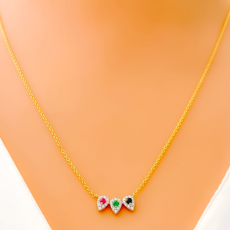 This stunning 18k gold necklace, weighing 2.7 grams, showcases a captivating round multi-color tourmaline accented by a brilliant round brilliant-cut diamond totaling 0.15ct. The luminous G-H color and VS clarity diamond enhance its radiant sparkle, while the vibrant hues of tourmaline add a distinctive and elegant touch. Measuring 18 inches in length with a refined 0.25-inch drop, this piece offers versatility with 2-inch adjustable links for a customized fit. Secured with a durable lobster ring lock, this necklace seamlessly blends luxurious charm with contemporary sophistication, making it a standout addition to any fine jewelry collection.