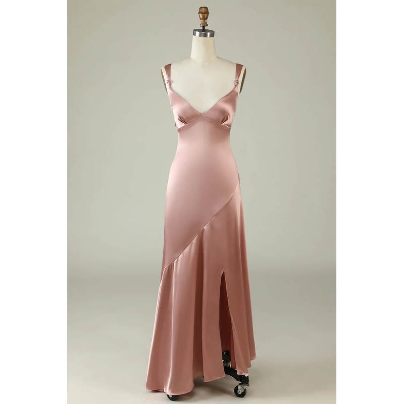 Be the first to review “Powder blusher asymmetrical slit bridesmaid dress”