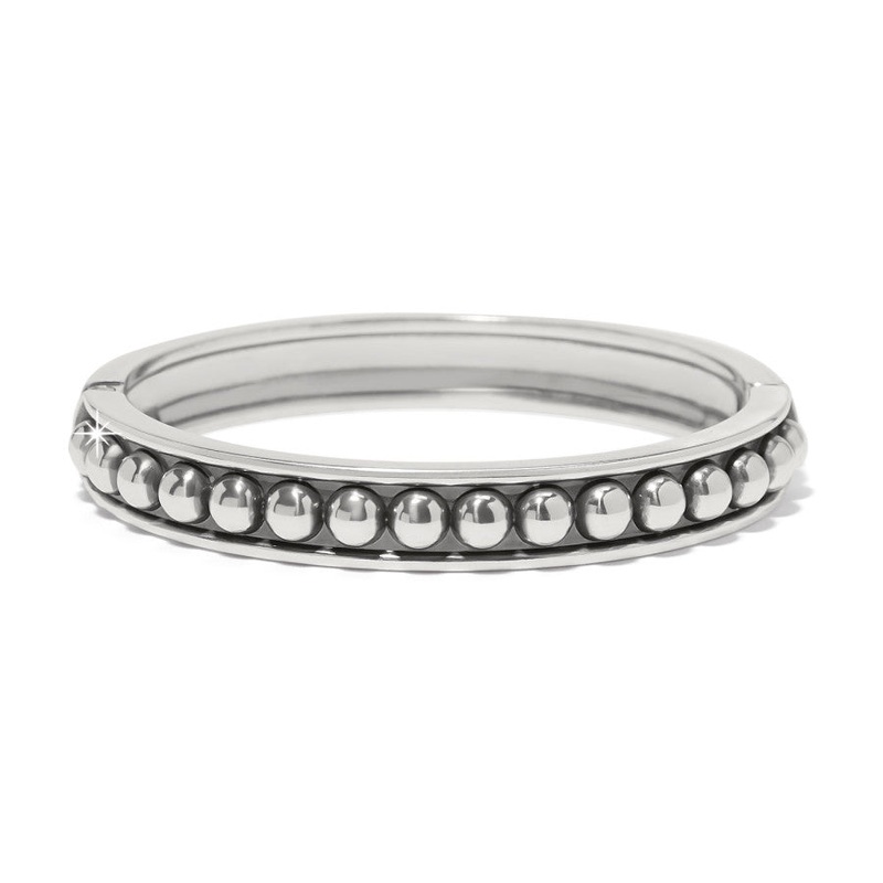 This bangle references heritage silver with both modern details and craft and has the look of real silversmith jewelry.