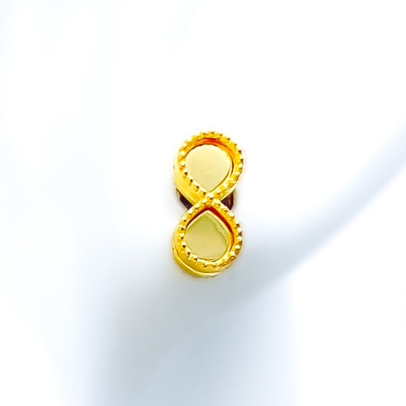 Symbolizing eternal elegance, these 21k gold infinity loop earrings showcase timeless sophistication with their sleek and refined design. Weighing 1.7 grams, their radiant yellow gold finish enhances the graceful curves, making them a meaningful and stylis