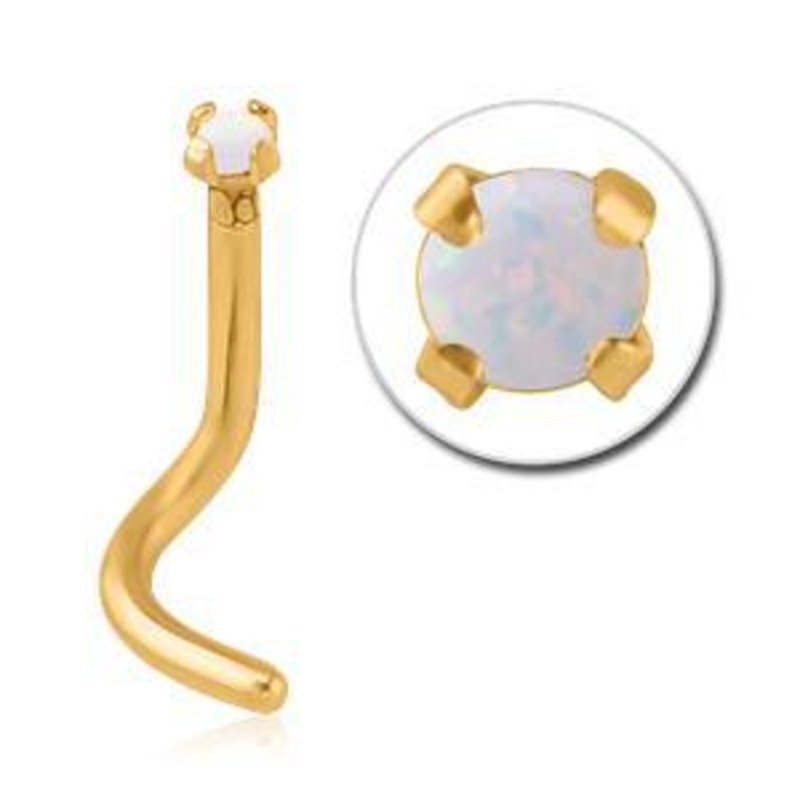 The 20 gauge prong-set synthetic opal nostril screw ismade from gold PVD coated316L stainless steel. Choose your size below.