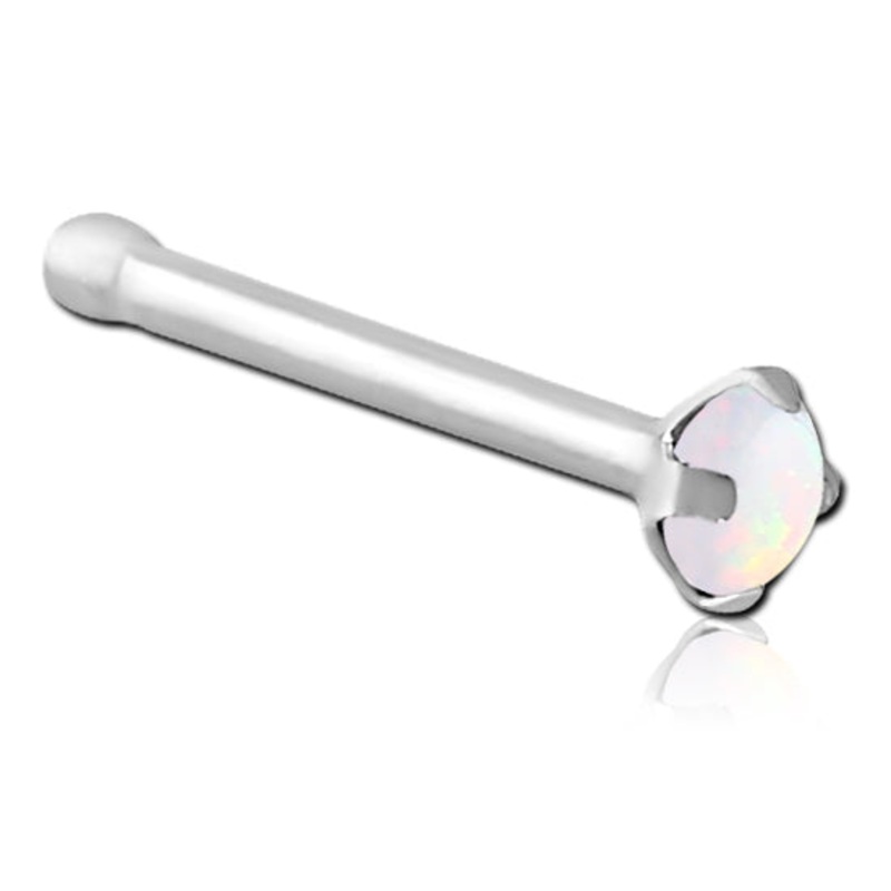 The prong-set opal nose boneismade from 316L stainless steel. Choose your size and synthetic opal color below.