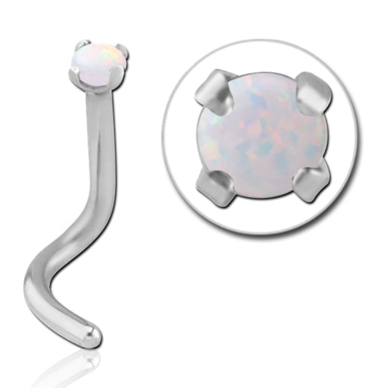 The nostril screwismade from 316L stainless steel with 1/4" wearable area. The 2mm prong-set synthetic opal is available in white only.
