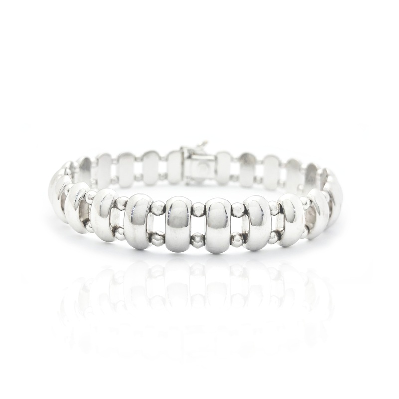 Precious Metal:14 Karat White GoldGemstone: NoneSize: 7.00 Inch*Width: 11.05 mm*Available Weight: ~10.2 grams**All weights and measurements are approximate.Please contact us if you have further questions about alternate sizes or styles, availability, speci