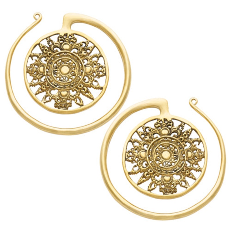 These puju circles are cast from solid brass by Diablo Organics. Choose your size and metal below.Small Dimensions: 56mm diameterWeight: 24 grams each pieceLarge Dimensions:75mm diameterWeight: 66 grams each piece