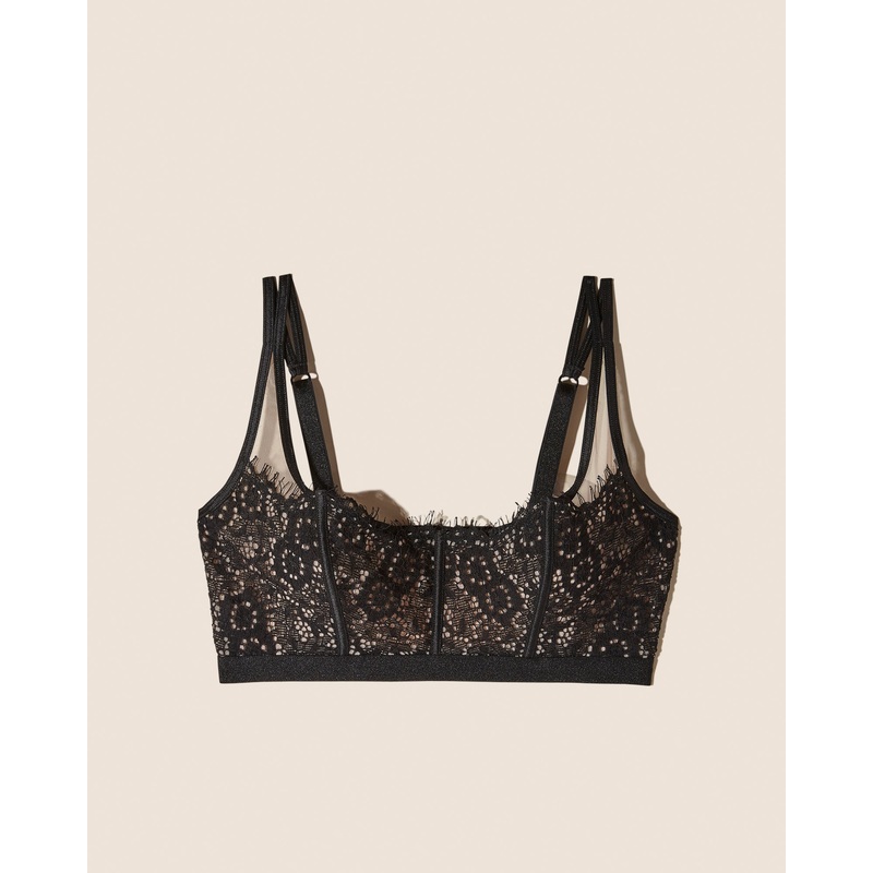 Wireless bralette designed as a fashion layering piece.Detailed, scalloped, eyelash lace with soft, sheer microfiber mesh.Unlined, non-padded cups.Pull-on style with a scoop neckline.Adjustable straps.Hand wash. Do not dry in the dryer.Lace: 100% polyamide
