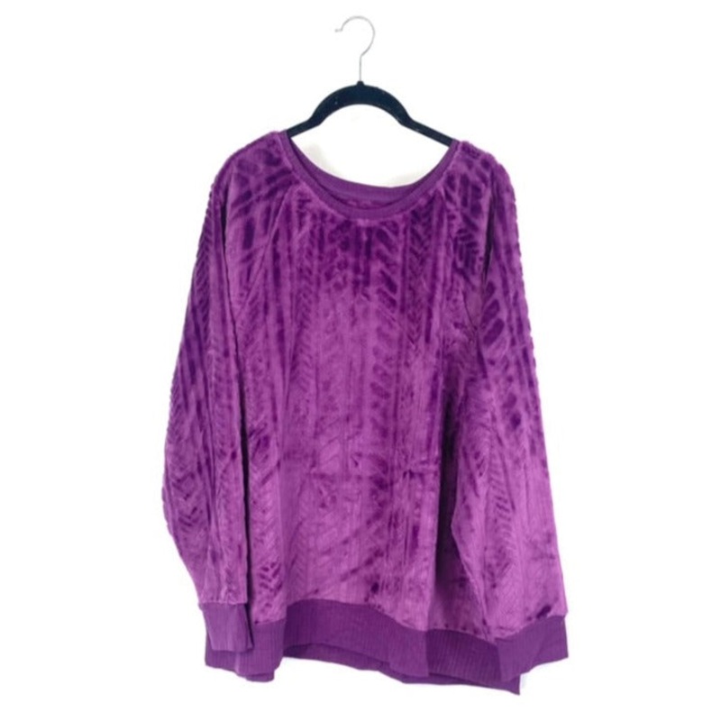 Cuddl Dudspurple fleece long sleeve top with imprinted design, fleece interior and scoop neckline