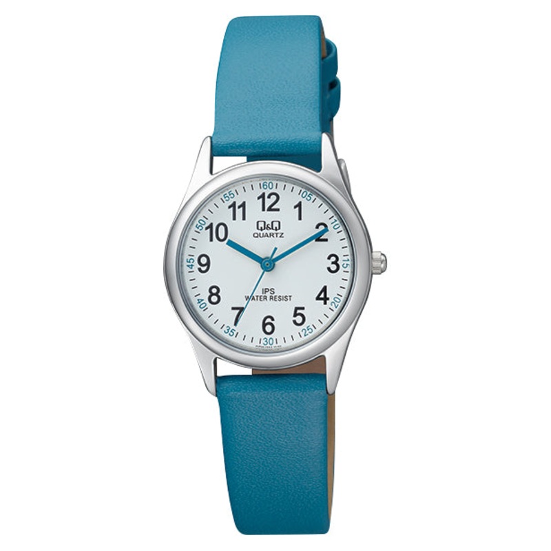This Fun Ladies blue strap analog watch is practical and stylish. With blue hands and strap and full numbers at the hour markers