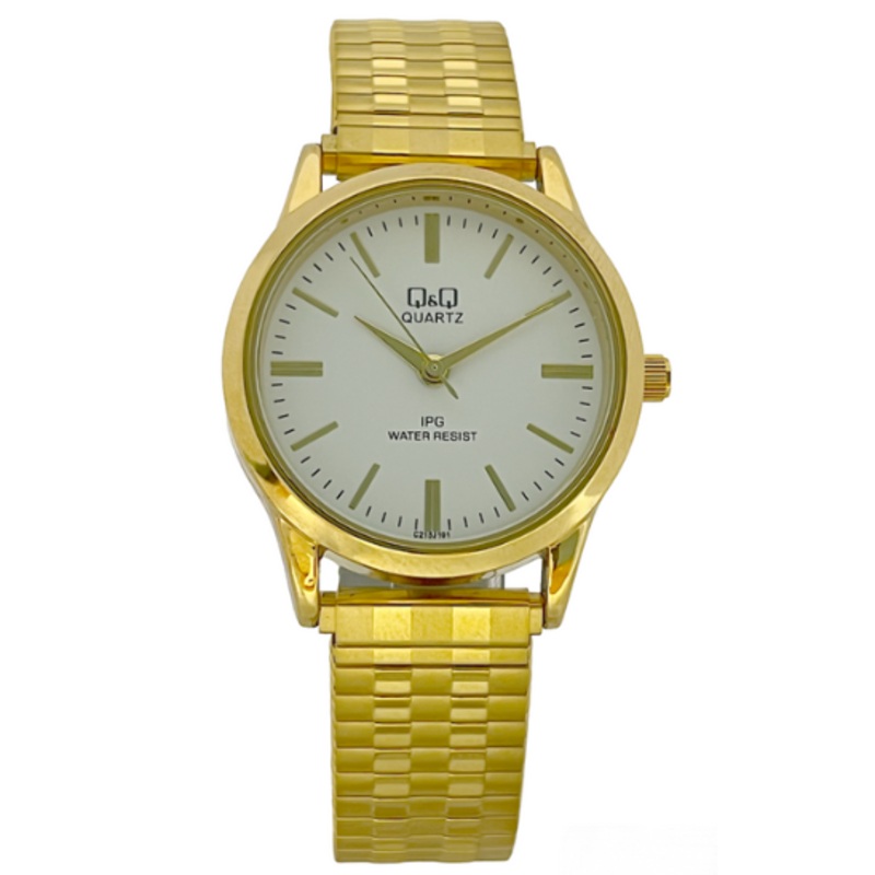 This Gold tone Q & Q watch brings style and elegance with a expander bracelet strap that makes it easy and comfortable to wear
