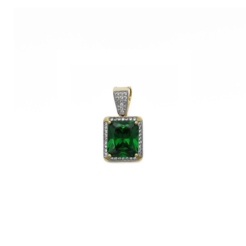 Be the first to review “Radiant Cut Faux Emerald Halo Pendant (14K)”