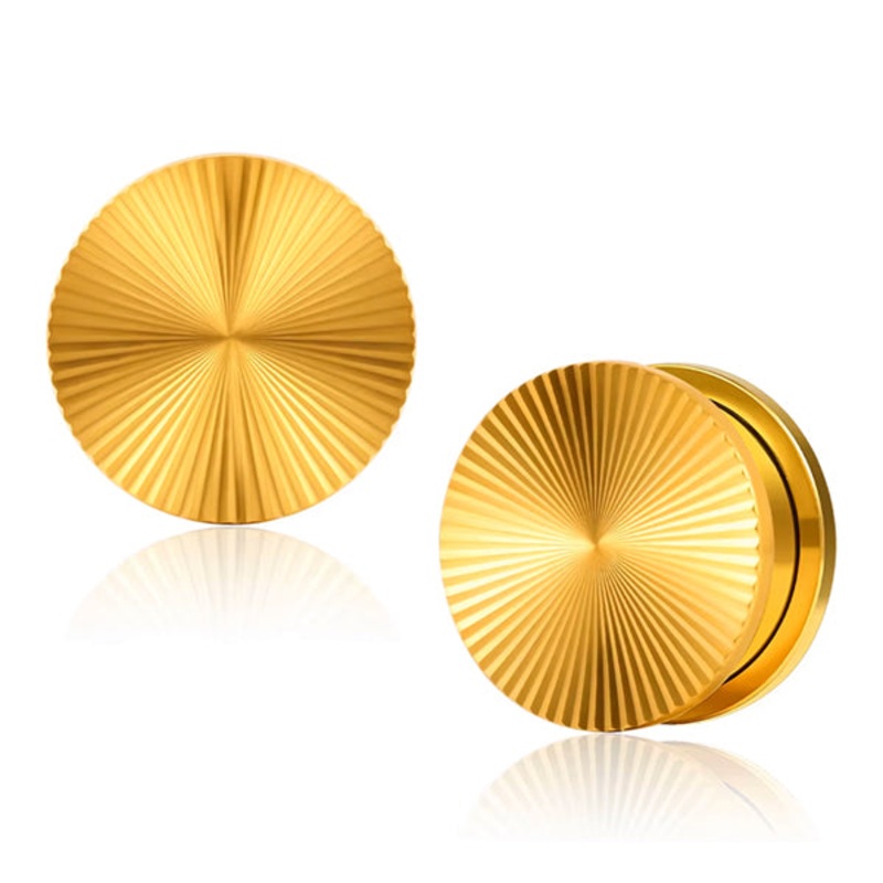 These screw-on radiant plugs are made from gold PVD coated 316L surgical grade stainless steel with external threading. They have a wearable area of 1/4" between flares. The back side unscrews for easy insertion. Choose your size below.
