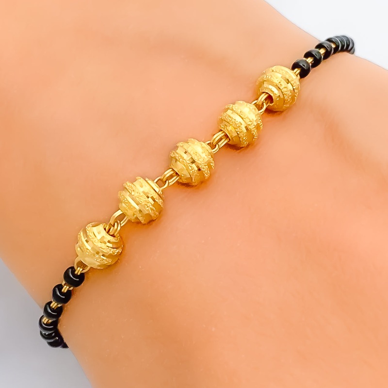 Radiant Ornate 22k Gold Black Bead Bracelet
