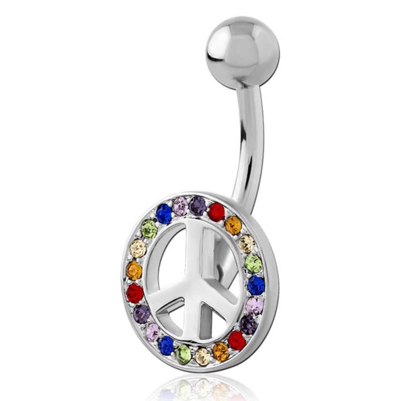 Rainbow CZ Peace Sign Stainless Belly Ring 14g – 3/8″ long (10mm) Multicolor Stainless Steel