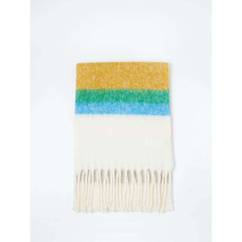 Soft alpaca scarf with multicolored stripe print and fringes.Multicolored stripesFringed endsMaterialsFabric Content: 80% alpaca, 20% polyamideMade in ItalySize Guide200 x 33 cm