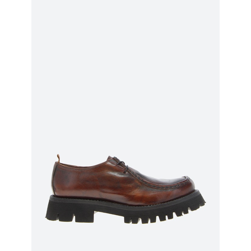 gravitypope Raida with a chunky lug sole. This moc toe lace-up in a smooth leather upper is a timeless piece to be worn on any occasion.