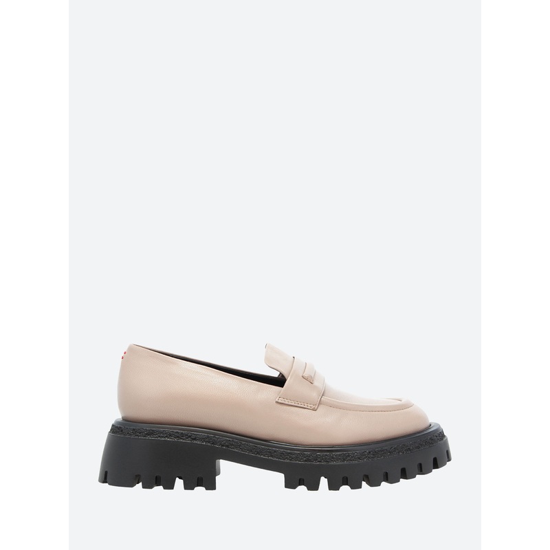 A menswear-inspired classic penny loafer grounded on a chunky lug sole for a utilitarian flair.