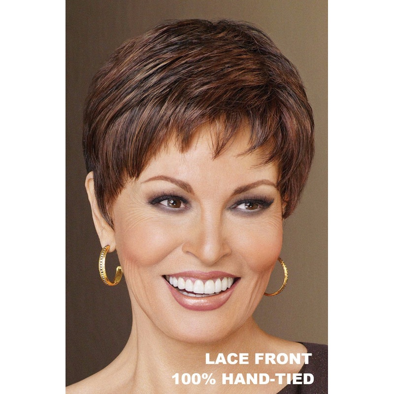 Wig features: Monofilament Top, Lace Front, 100% Hand-tiedVibralite synthetic fiber, 100% hand knotted base, monofilament top, Sheer Indulgence lace front, gives this pixie style wig off-the-face styling versatility.Length: Front 2.75", Crown 3", Sides 2.2