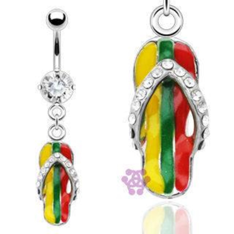 Rasta Flip Flop Belly Dangle 14g – 3/8″ long (10mm) Stainless Steel