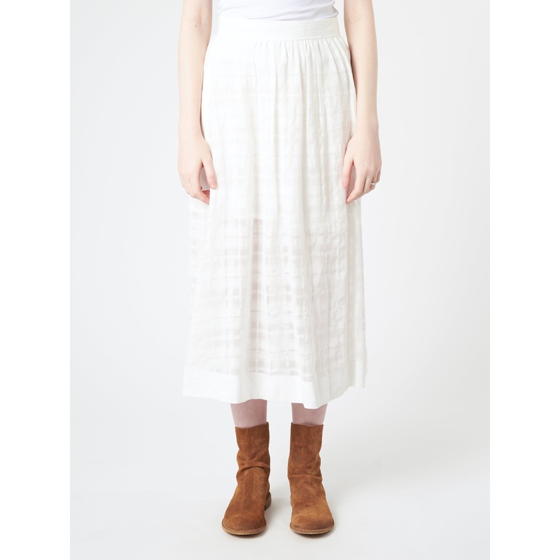 Ecru skirt with sheer checks in linen-cotton blend.Mid-riseHidden side zipTone-on-tone liningSlightly flared cutMid-calf lengthMaterialsFabric Content: 76% linen, 24% cottonMade in BulgariaSize GuideRuslana wears size 36. She is 5'10"; bust 32.5"; waist 24