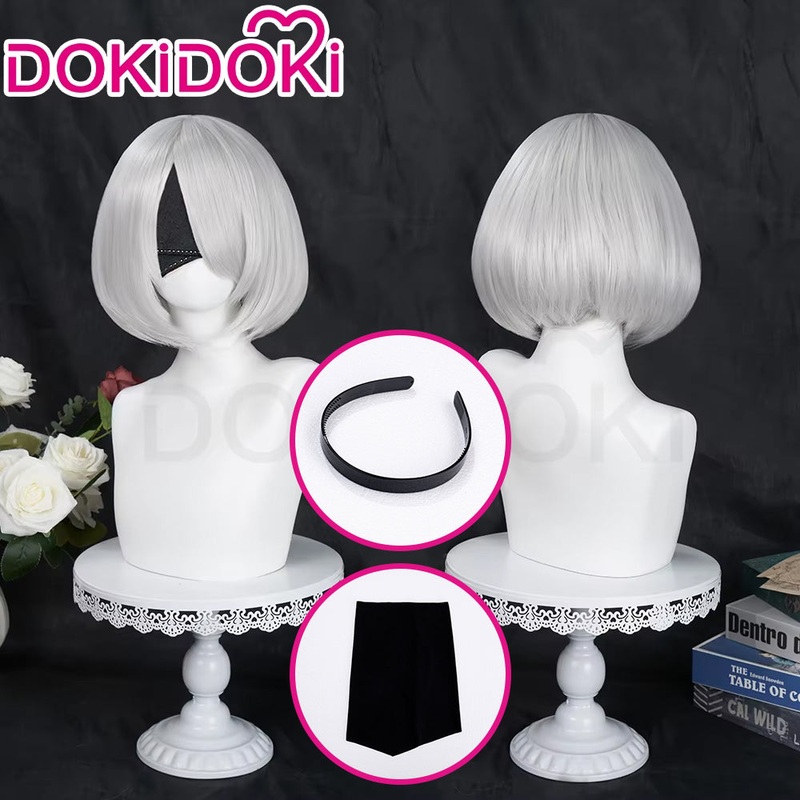 Ready For ShipDokiDoki Cosplay Game NR:Automata 2B Cosplay Wig No. 2 Type B Women Short White Heat Resistant Hair / Eyeshade / Hairband